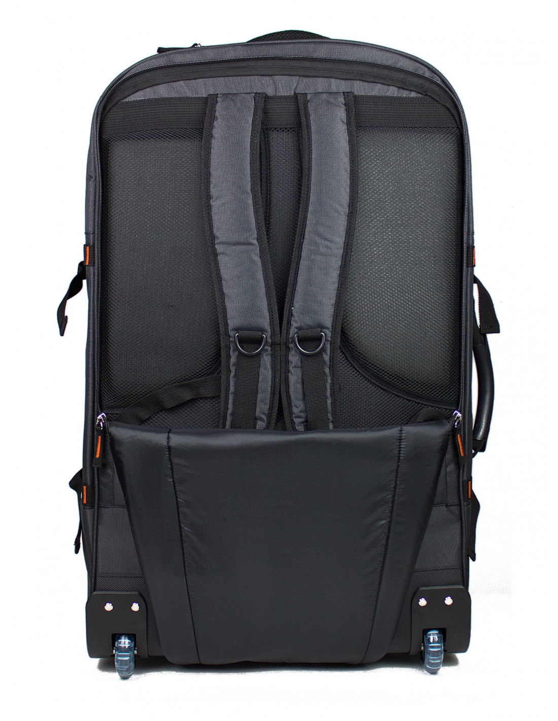 teleskopické madlo nastavitelné ve dvou pozicích a schované v horní části batohu v kapse uzavíratelné zipem