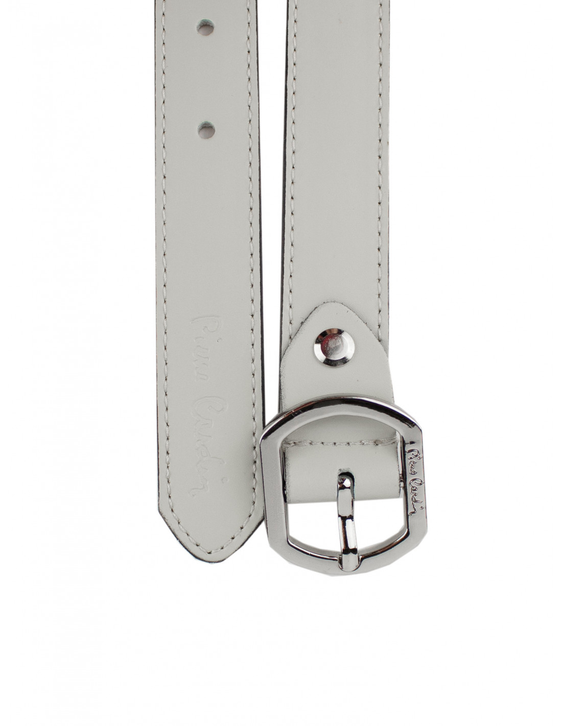stříbrná přezka s logem značky Pierre Cardin