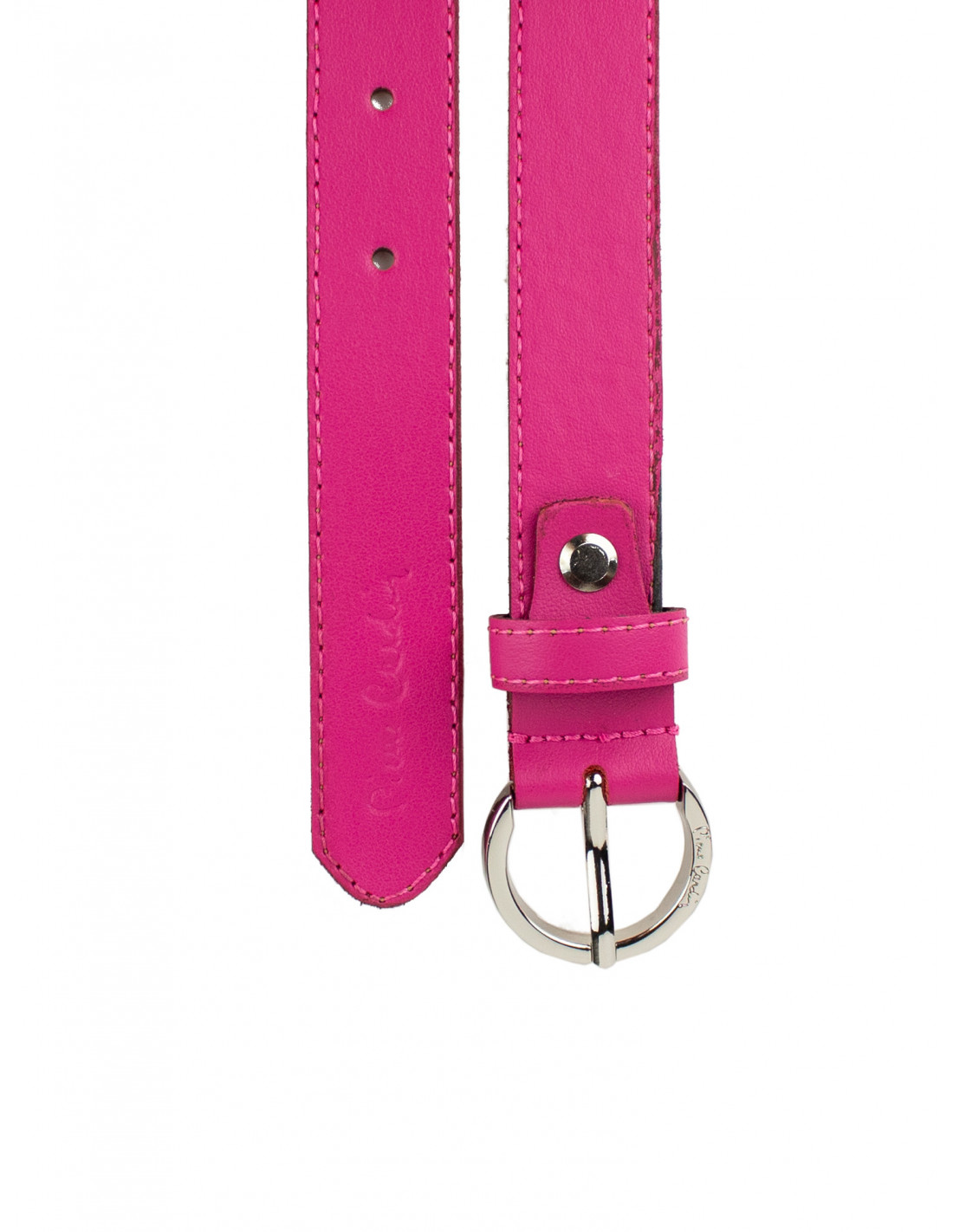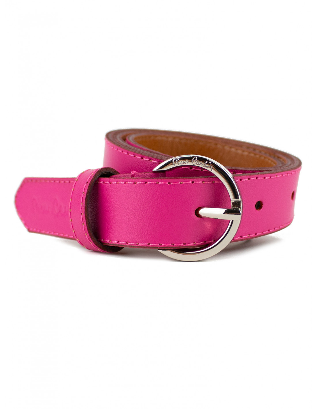 kulatá stříbrná přezka s logem značky Pierre Cardin