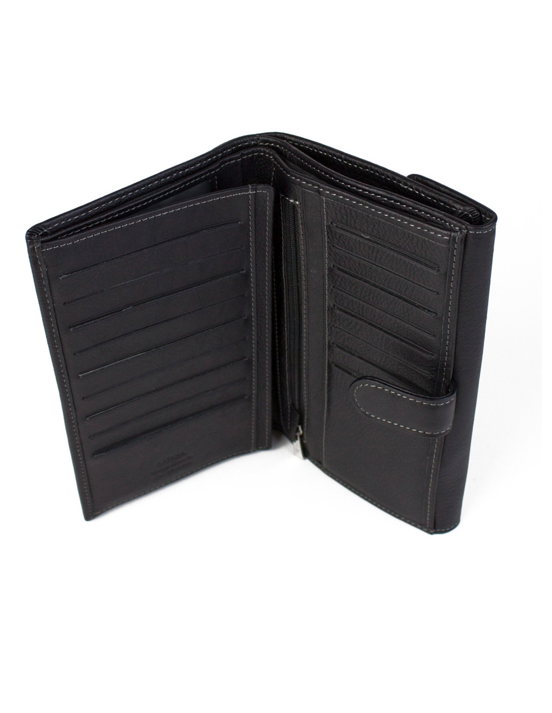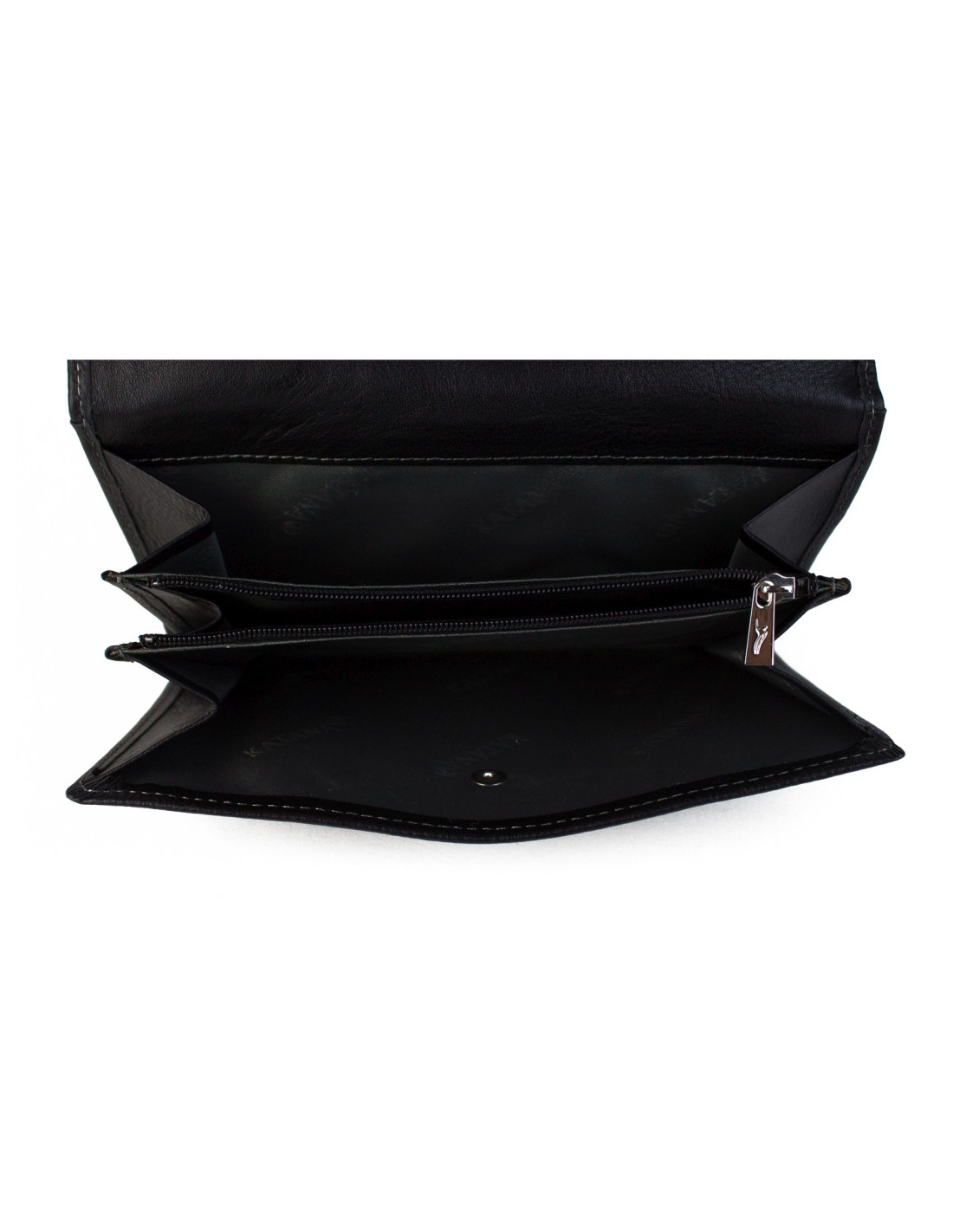 • peněženka má dvě hlavní přihrádky uzavíratelné na patent