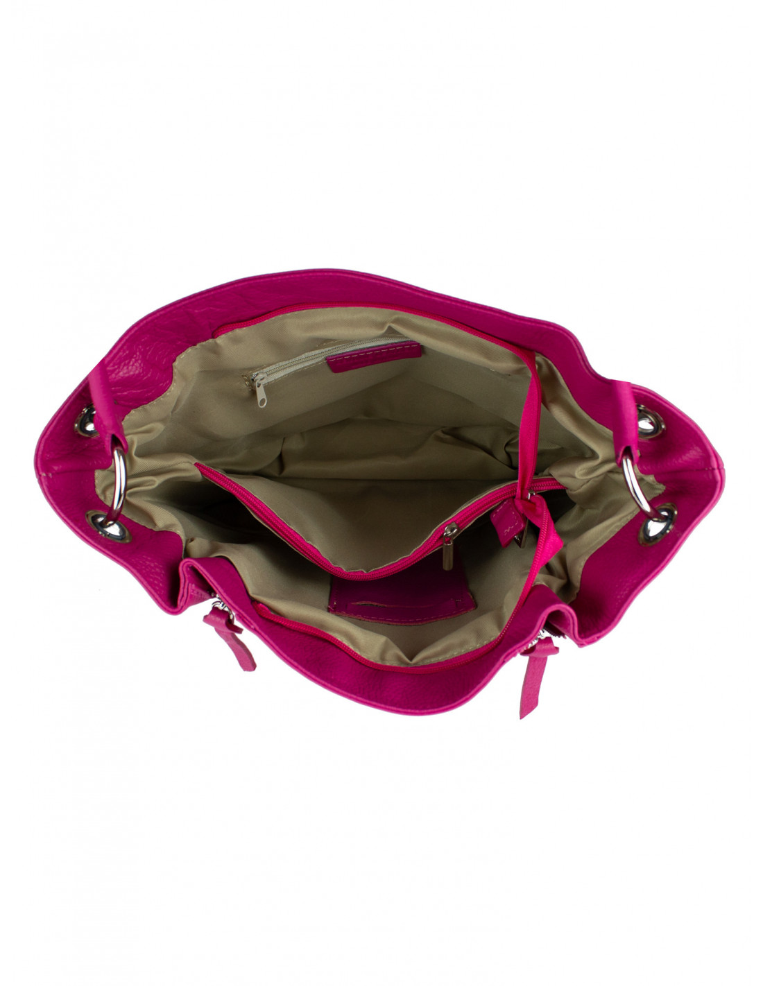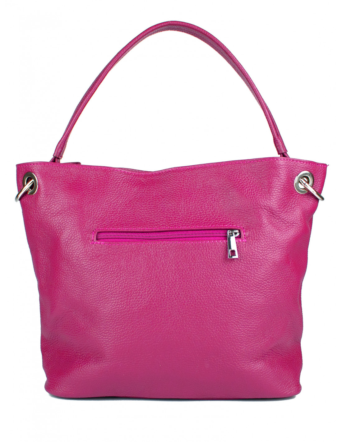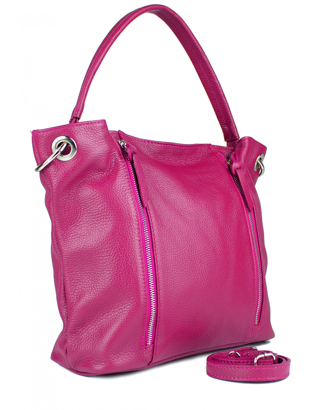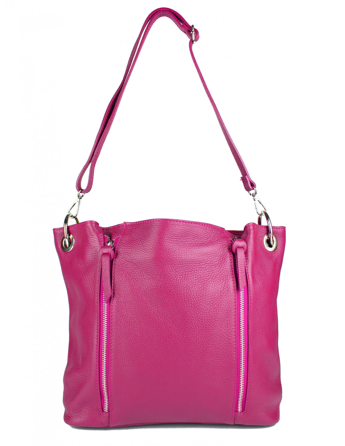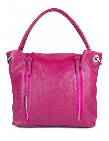 Dámská kabelka je vyrobená z kvalitní hovězí kůže, nabízí dostatek místa pro peněženku, mobilní telefon, kosmetiku, psací potřeby, ale i dokumenty ve formátu A4. Na přední straně má dva zipy. Kabelka je vhodná na každodenní nošení do práce, nebo na procházku do města. Nabízíme ji v pěti barvách a to v černé, tmavě červené, koňakové, růžové a pudrové.