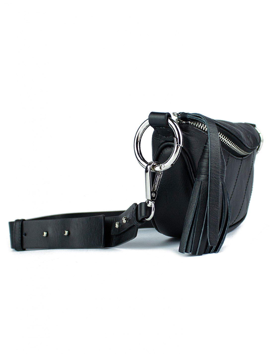 Ozdobný kožený střapec na hlavním zipu.