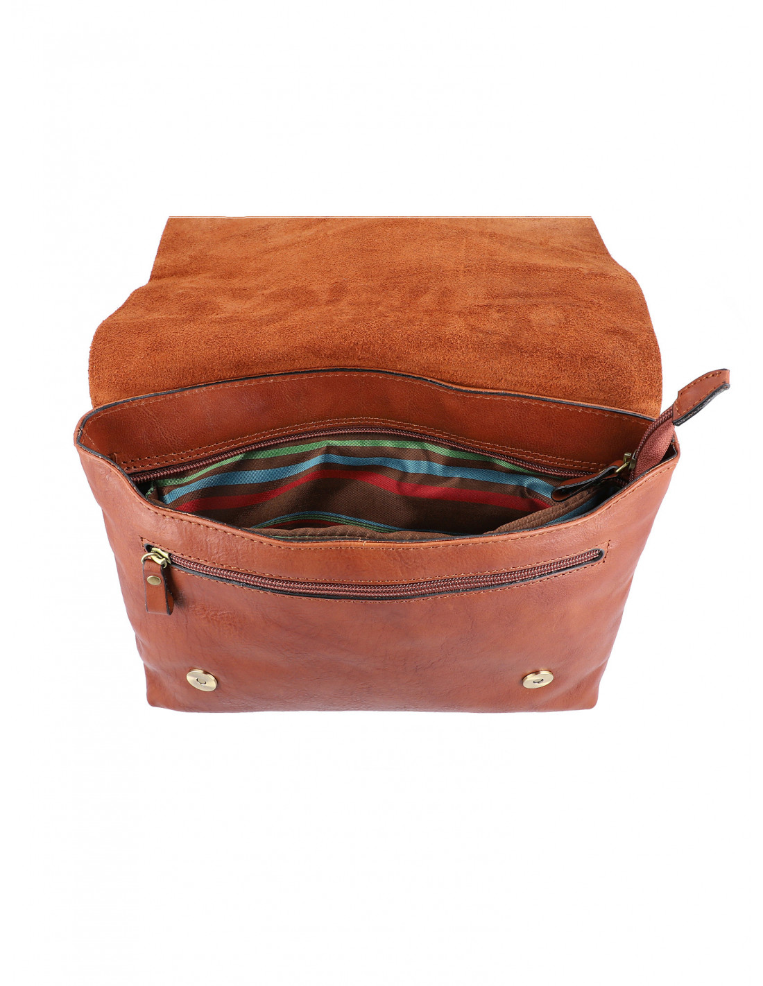 vnější zadní kapsa uzavíratelná na zip a větší přední kapsa uzavíratelná na zip pod klopou